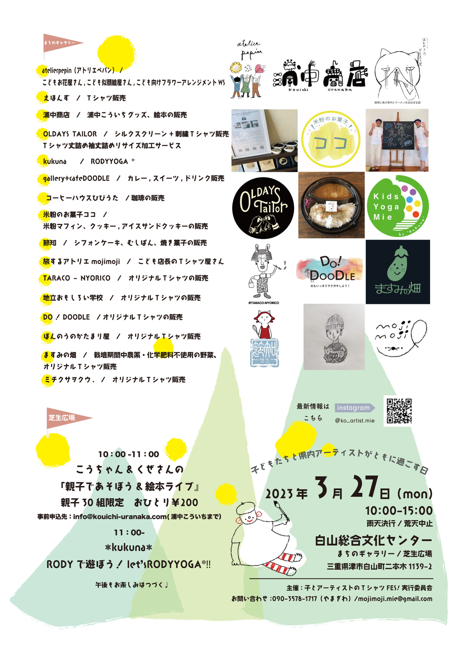 3月27日(月)「子とアーティストのTシャツFES!Vol.2」津市白山町であります!