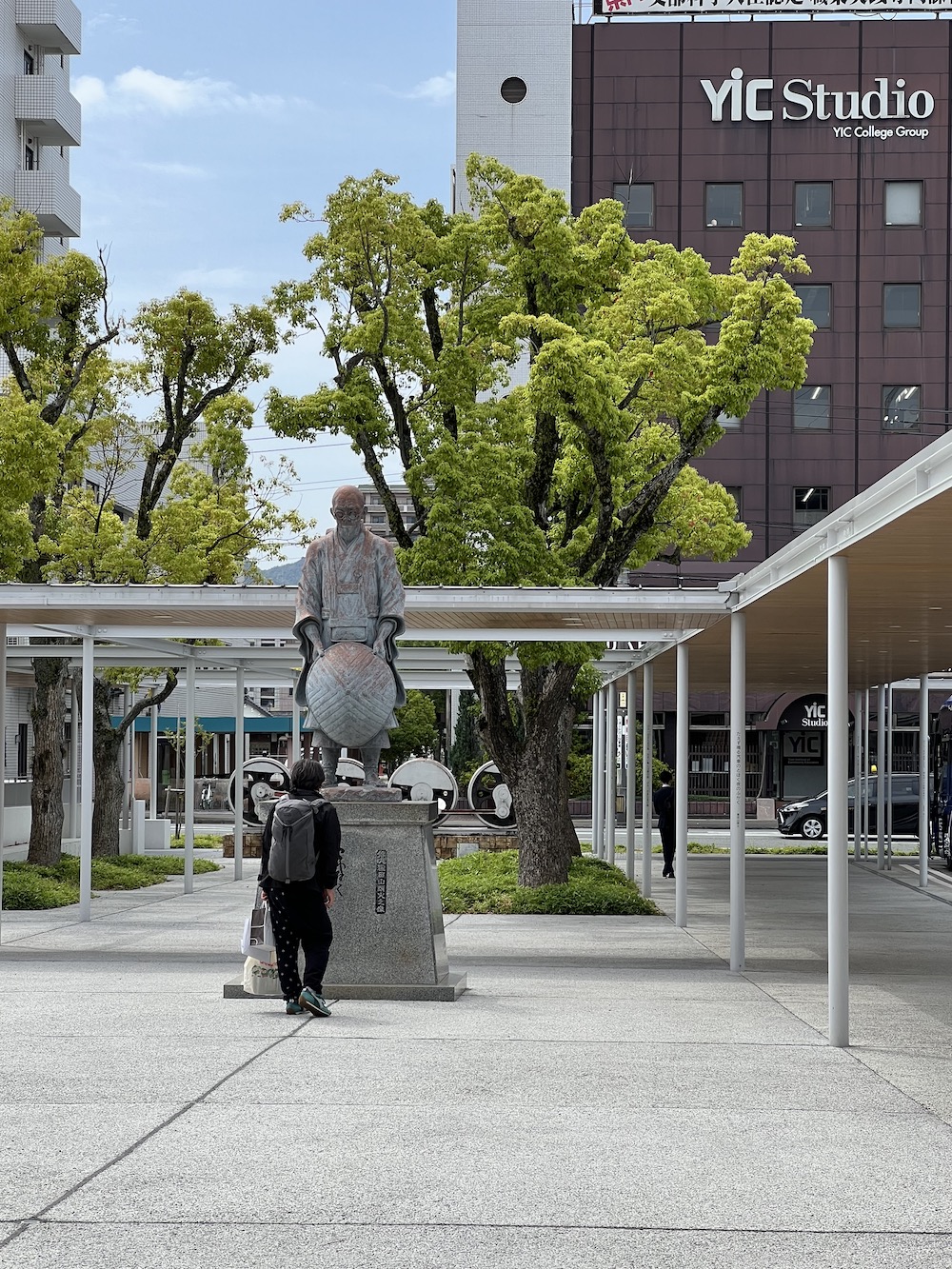 銅像マニアの塩川氏。すぐに近寄っていきます。