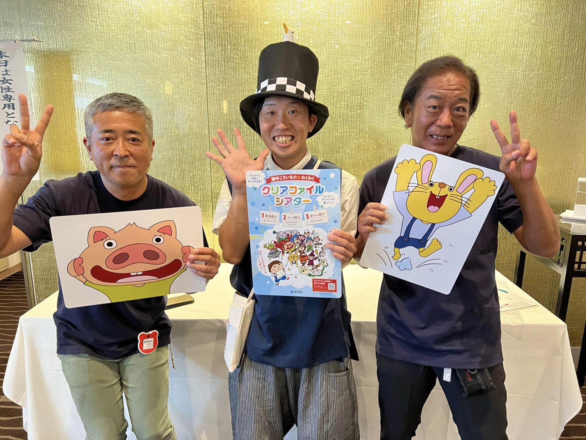 メイトの竹井社長、体操小嶋信之先生、新沢としひこさん、山野さと子さん、松家まきこ先生、造形の矢生秀仁先生、と写真撮影をし、休憩時間サイン会へ
