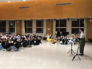 研修会は約1時間45分 あそび実技、あそび歌、スケッチブックシアター、ミニワークショップ、絵本と盛りだくさん!