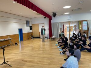 園長先生のお話。なんとこういった機会をするのは初めてだとか・・・