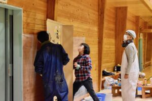 完成した看板を取り付け中。あ、このタイミングで写真とっておきましょう!とじゅんちゃん!ナイスです!