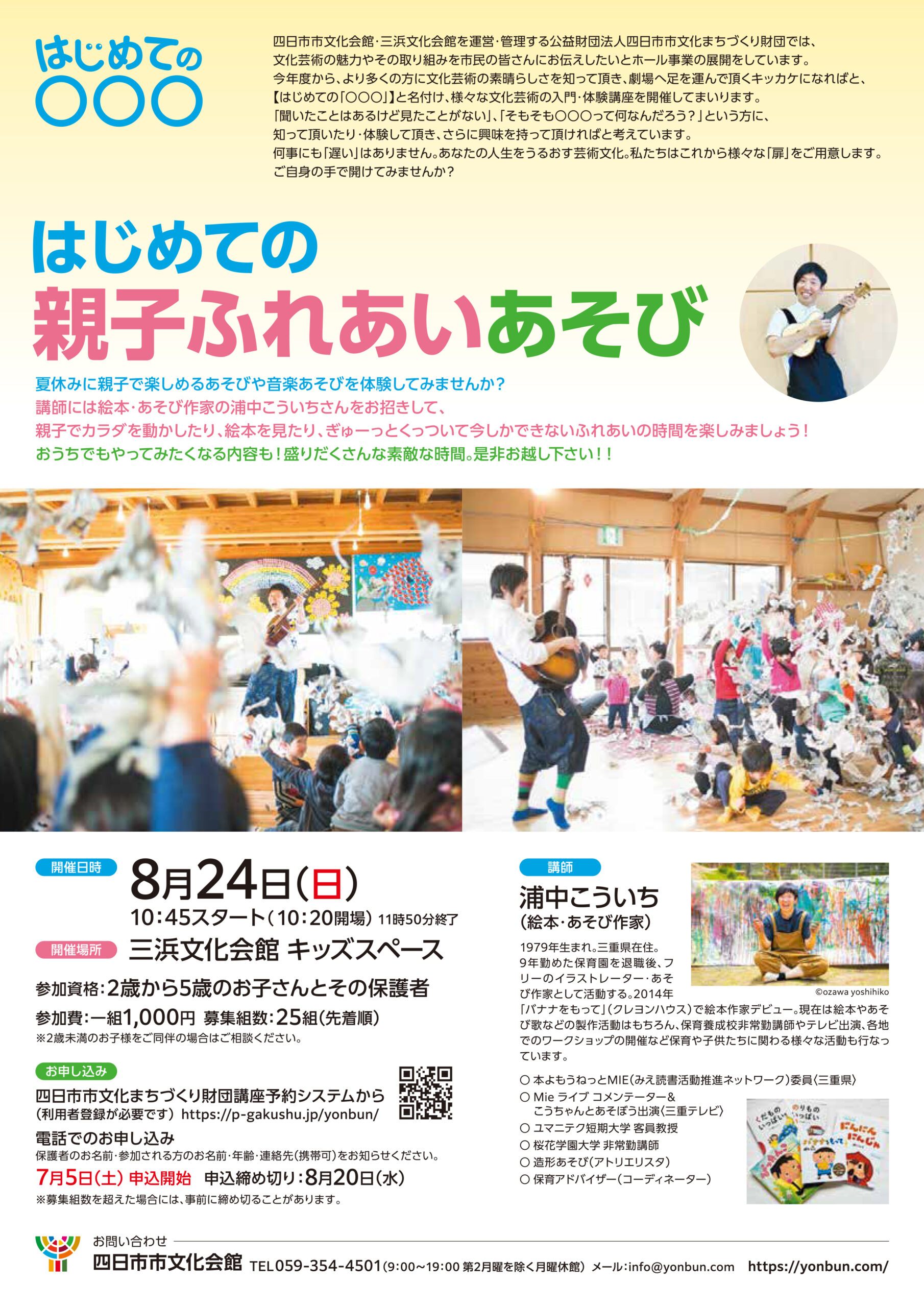 [お知らせ]はじめての親子ふれあいあそびin四日市 未分類 2025年07月15日(火曜日) 8月24日に四日市市にある美浜文化会館キッズスペースにて「はじめての親子ふれあいあそび」があります。 ぜひみなさんお越しください。