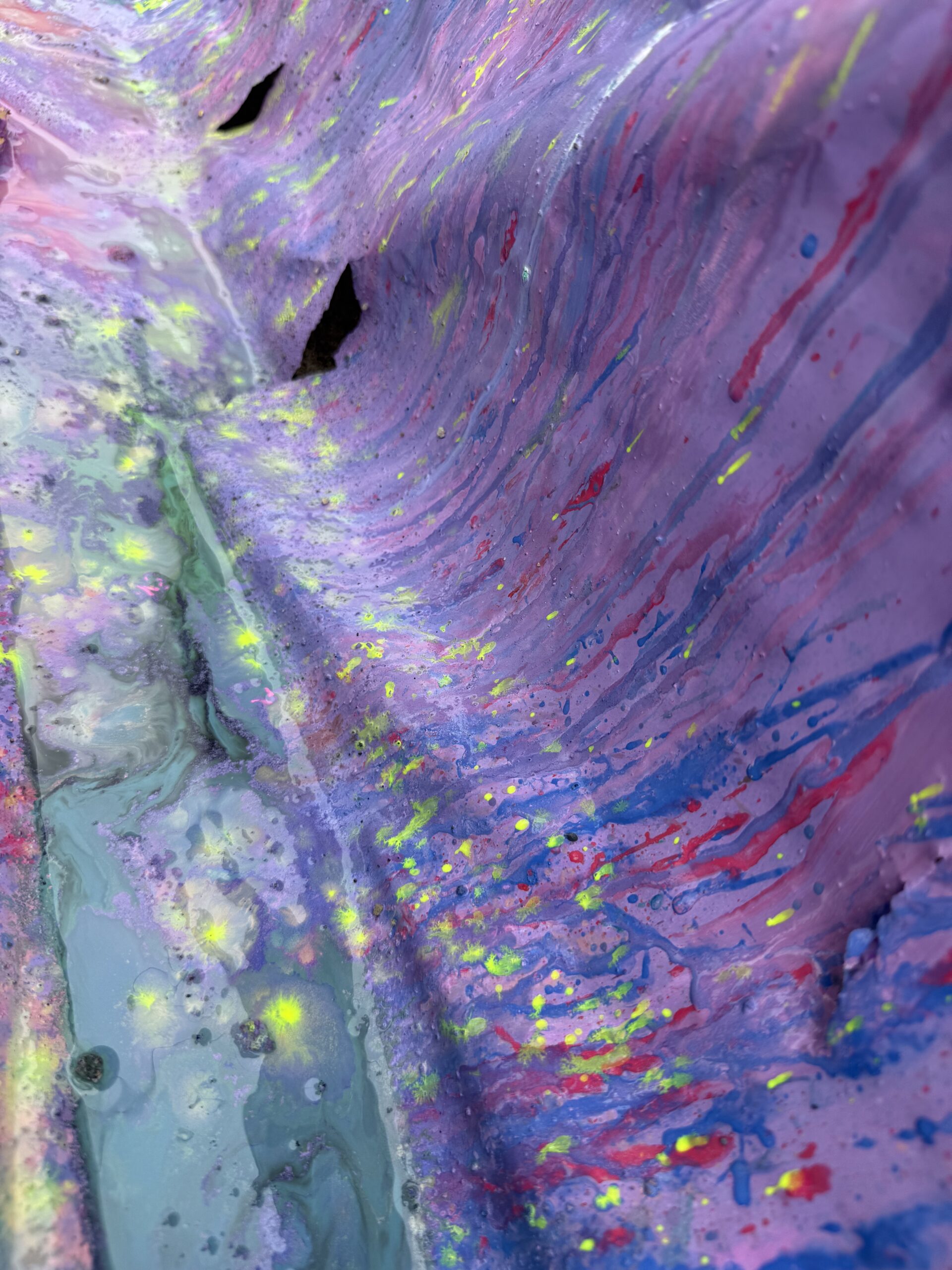 興味をもってくれた彼女は砂に絵の具のいろがつくと目を見開き、なにか感じてくれたみたい