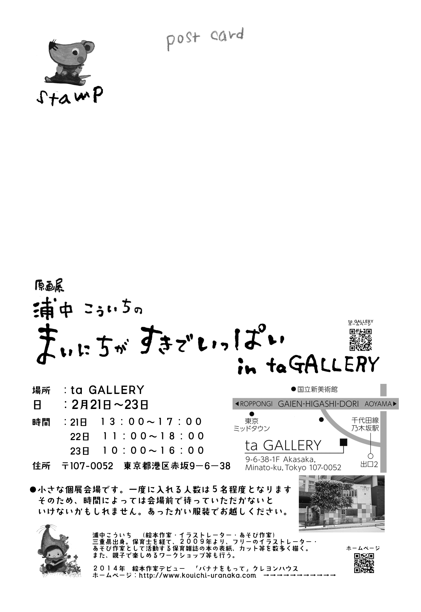 2026年2月21日〜23日浦中こういち原画展「まいにちがすきでいっぱい」in ta GALLERY