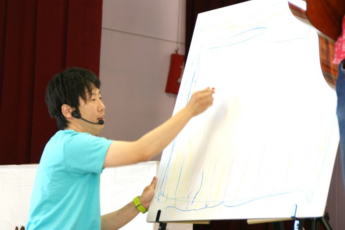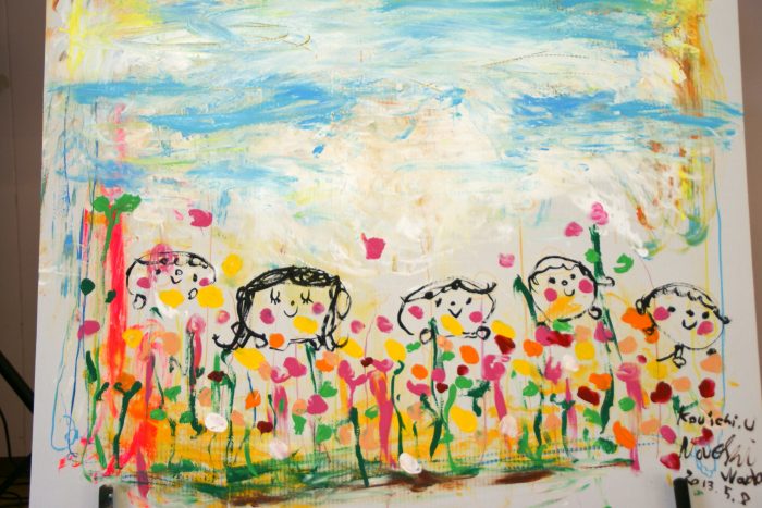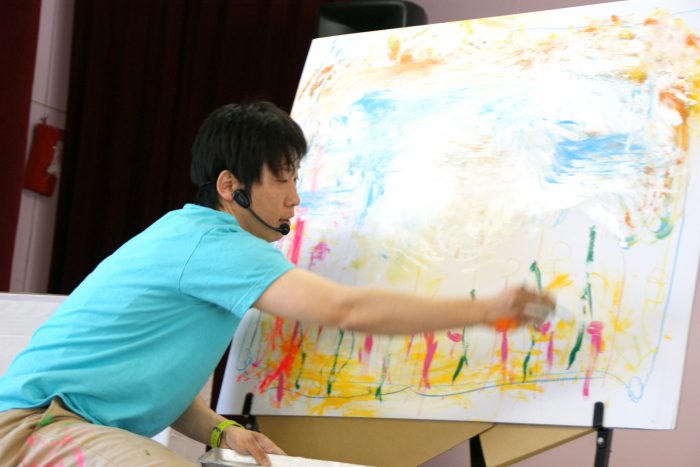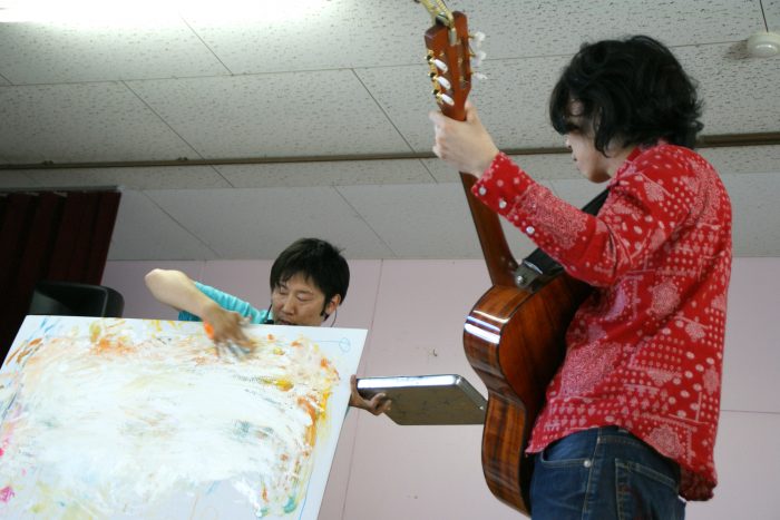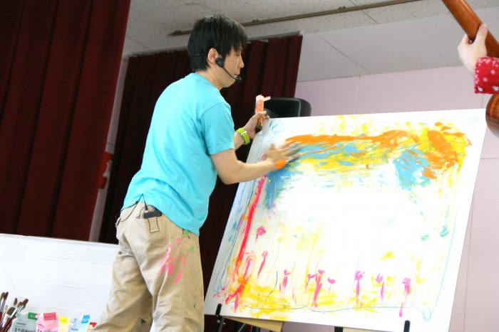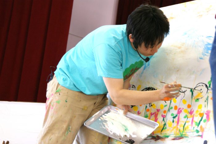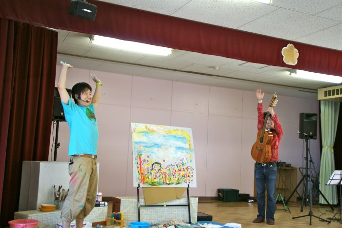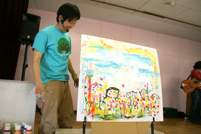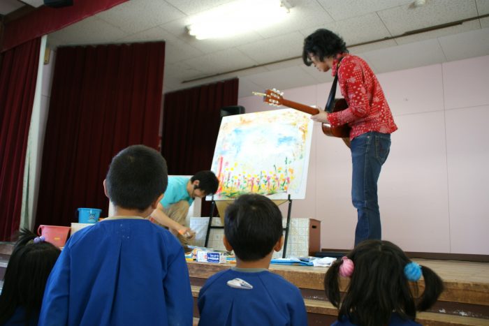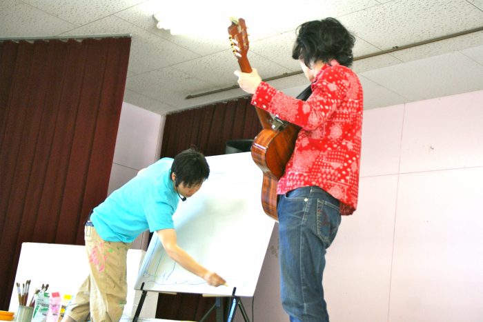 大好評のライブペイント!こどもたちの心は出来上がる絵、曲に釘付け!